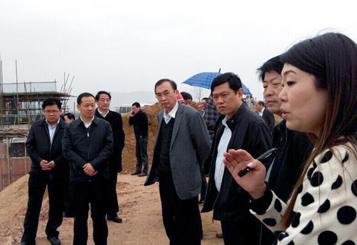 2015年3月26日上午,麻城市委书记杨遥、市长蔡绪安率市委、市政府、市人大、市政协领导一行,冒雨赴公司麻城红山咀泵站新建工程工地检查指导工作。