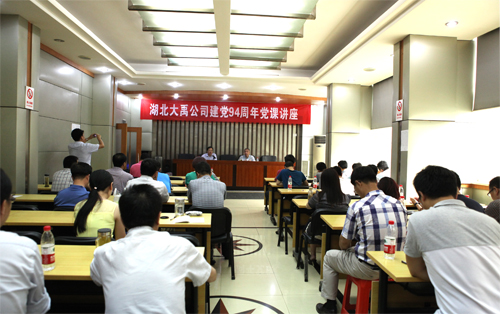 为庆祝建党94周年,进一步提升公司党员干部的党性素质,6月27日下午,公司在二楼会议室举办建党94周年党课讲座,特邀请省直机关党校校长、教授汪连天授课。公司在汉领导余中平、汪炳生、李长华、袁水斌、雷建军、石裕友、闵国武等出席讲座,在汉中层管理人员及机关党支部党员共计60余人参加讲座。