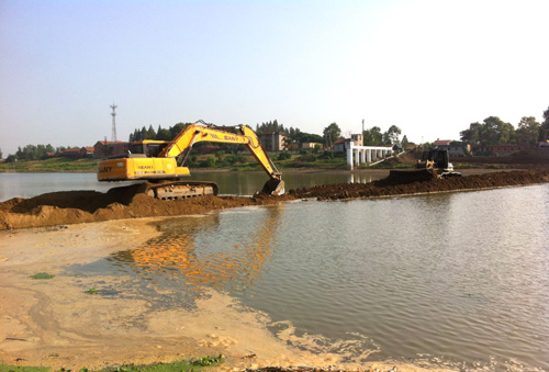 汉川市新沟闸除险加固工程一期内河围堰顺利合拢