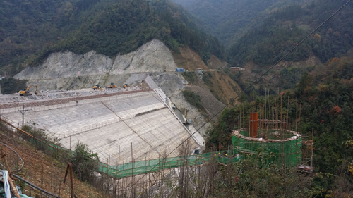 截止至2015年11月10日,大坝回填已基本完成,平均高程达到760.5m,距离设计高程不到3m。目前项目已完成大坝土石方开挖、溢洪道进口段及溢流堰段砼浇筑,竖井砼衬砌已浇筑至760.4m高程,距离顶部高程767.62m,剩余7.22m,已完成土石方开挖22.8万m3、砼浇筑1.52万m3、大坝填筑48万m3、钢筋制安600t,完成产值约4500万元,约占工程总投资的75%。
