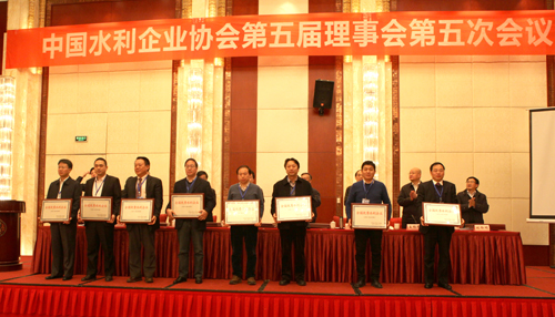 12月18日,中国水利企业协会第五届理事会第五次会议在武汉召开,会议审议通过2015年工作报告,并对2013-2014年度全国优秀水利企业和优秀水利企业家进行表彰。中国水利企业协会会长顾洪波代表第五届理事会作2015年度工作报告。湖北省水利厅党组成员、副厅长唐俊代表省水利厅在会上发表热情洋溢的致辞。会议由中国水利企业协会秘书长冯玉禄主持,公司董事长兼总经理余中平出席会议,并接受授牌仪式。