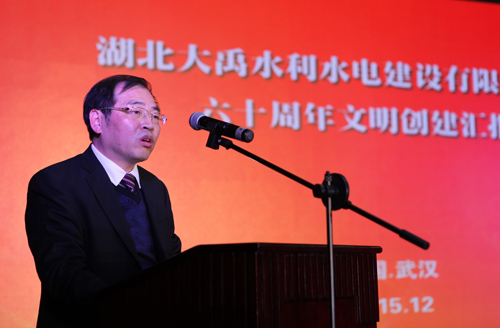 在深入贯彻落实十八届五中全会精神的大好形势下,沐浴着省委省政府开展“万名干部进万企,创优服务稳增长”活动的东风,今天,我们相聚在这里,举行大禹公司60周年文明创建工作汇报会,以此铭史感恩,鼓劲加力,再创佳绩!我们刚刚被确认为“湖北省文明单位”,今天上午又传喜报,被评为“全国优秀水利企业和企业家”“双优”单位。在这承前启后的重要节点,我代表大禹公司领导班子,向莅临汇报会的各位领导、各位来宾表示最热烈的欢迎和最衷心的感谢!向长期以来关心和支持大禹公司发展的新老领导、有关单位和部门、合作伙伴以及各界朋友表示最诚挚的谢意!向曾经为公司发展做出贡献的历任老领导、老同志,表示最崇高的敬意!向仍然奋战在生产施工第一线的广大员工,以及在他们身后默默奉献的家属致以最亲切的慰问和最美好的祝愿!