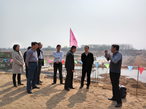 2016年3月22日上午,麻城市委书记杨遥、市长蔡绪安率市委、市政府、市人大、市政协领导,赴公司麻城月亮岩橡胶坝和举水干流防洪工程工地检查指导工作。