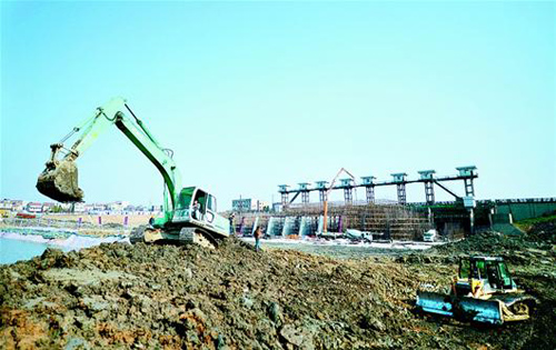 昨日,汉川新沟闸除险加固工程和汉北河新沟二线船闸工地一派繁忙景象。这两项工程为汉北河流域重要水利枢纽工程,工期为两年,已于去年底正式开工。工程完工后,将彻底消除整个汉北河流域的防洪安全隐患,提升汉北水系航道能力,促进沿河区域经济发展。