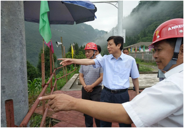 喻家河水库项目部负责人陪同检查。(喻家河项目部 刘雄)