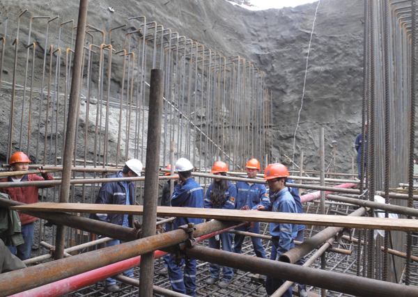 玻利维亚当地时间8月10日上午10点10分,在项目经理罗应军的一声令下,公司承建的圣何塞水电站EPC项目同时启动两套拌合系统,开始圣何塞-1厂房第一仓混凝土浇筑。该时间也是业主制定的圣何塞水电站EPC项目节点时间(厂房第一仓混凝土浇筑节点工期),如不能在节点工期完成第一仓混凝土的浇筑,承包商将面临高达46000美金/天的巨额罚款。为此,项目部上下一心、众志成城,秉持“大禹传人、水利铁军”的一贯作风,昼夜抢抓工期,连续奋战,完成了土石方开挖12万m³,锚杆钻孔支护约6000延米,喷射H28MP混凝土约7500m²,厂房接地系统安装、垫层施工及模板钢筋制安等工作。在连续高强度分层开挖、支护施工后,终于在最后关头完成了第一仓混凝土浇筑的所有准备工作,并顺利开仓浇筑。第一仓混凝土的全部浇筑工作于当天下午结束,顺利完成了节点任务。