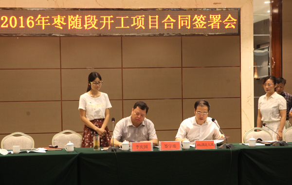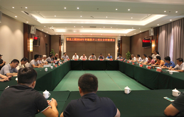 公司喜中鄂北地区水资源配置工程2016年第4标段项目—余中平董事长出席鄂北调水工程2016年枣随段开工项目合同签署会议
