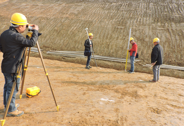 测量队队长胡保刚带领着刘锦、许培建、解晋这三个年轻的测量员在长约5.3公里、宽约200米的杂草丛生的野地里开始了原始地形测量攻坚战。场地内全部是芦苇、杂草、水塘,以及高低不平的土丘。测量小组采用全站仪、GPS交叉作业等多种形式进行原始地形的测绘。他们头顶烈日、冒着酷暑穿梭在乱草肥茂的荒地,顾不了蚊虫的叮咬;有时在水塘烂泥边,一不小心,两脚就深深地陷在淤泥之中,雨鞋无法拔出,只能先把两只脚踩在淤泥里,再用双手使劲拔出雨鞋。测量队员们一天下来,一身汗、一身泥、一身蚊虫叮咬的包,可是他们顾不上休息,还要及时把测量的数据导出来,在电脑上来绘制地形图。通过大家的努力仅仅用了十天时间便完成了原始地形测量任务。一场大战下来,几个年轻的测量员已从一个个白面小生变成了黑脸的包公。
