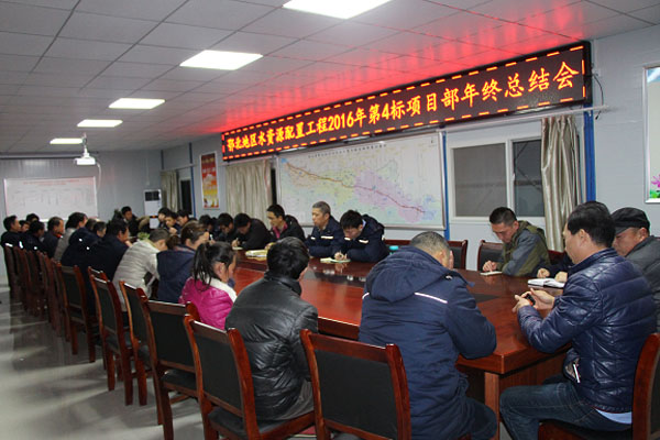 1月19日,鄂北地区水资源配置工程2016年第4标项目部召开了2016年度总结大会。会议由项目经理孙仁成主持,项目部全体员工参加会议。