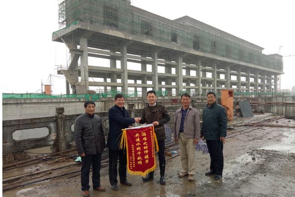3月22日上午,汉川市水利局副局长、新沟闸除险加固工程建设管理办公室负责人张洪山率汉川市水利局副总工、庙头灌区项目办公室负责人胡赤雄一行赴汉川新沟闸项目工地,送上一面 “困难之时伸援手,共建水利千秋颂”的锦旗,表达对新沟闸项目部帮助汉川市庙头灌区项目主体工程顺利脱险的感激之情。