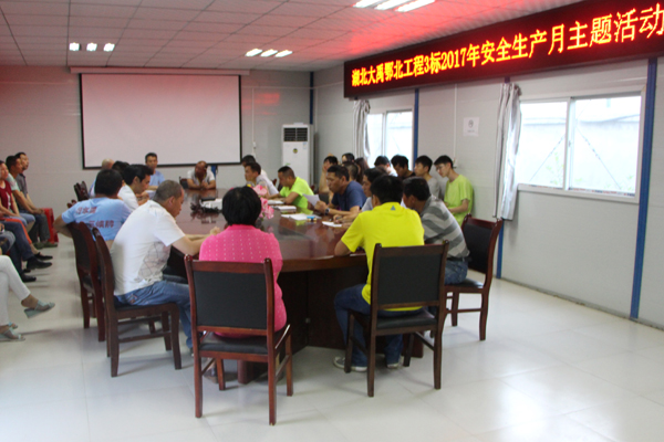 宣传培训强化意识。为突出宣传主题,项目部将2017年“安全生产月”主题宣传深入到各工区一线,让全体施工人员学习通晓中央、省厅、鄂北局和公司关于安全生产的重要指示精神和系列决策部署。同时,从6月初开始,项目部分别组织了夏季施工临时用电和消防安全两场专题培训;针对本标段在建和剩余施工项目,组织施工管理人员、专兼职安全员、工区班组长进行了生产操作规程再学习和安全防范措施培训交底。