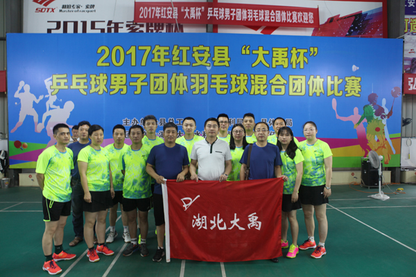 一年好景六月天,良辰盛会喜空前。6月23-25日,由红安县总工会、县水利局、县体育局主办,公司冠名的2017年红安县“大禹杯”羽毛球混合团体比赛在革命圣地红安县隆重举行。红安县副县长刘红英出席开幕式并宣布比赛开始,县委宣传部副部长刘应军代表组委会致辞,主办单位负责人参加开幕式,公司监事会主席胡刚参加开幕式并致辞。