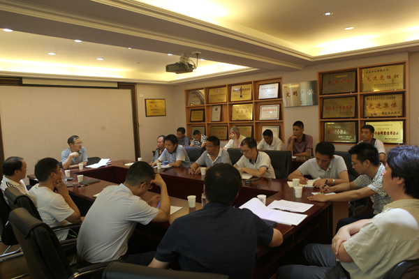 余中平传达了省水利厅关于《大型泵站流道工程质量控制关键技术研究》的会议精神。余中平指出,公司积极响应省水利厅号召,在前期沟通的基础上仅用几天时间编制完成了初步研究大纲。 6月30日,省水利厅组织专家对提交的大纲进行审查,并采取投票的方式确定由大禹公司牵头开展此次科研活动。