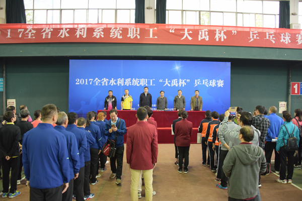 11月10日上午,由省水利工会主办,公司协办的2017全省水利系统职工“大禹杯”乒乓球赛在武昌洪山体育馆拉开序幕。省水利厅党组成员、副厅长焦泰文出席开幕式。省水利工会主任兼机关工会主席陈书奇主持开幕式。公司董事长兼总经理余中平出席开幕式并致辞。省水文局及其他单位主要负责人出席开幕式。省水利厅舞蹈队和部分运动员代表表演文艺节目。