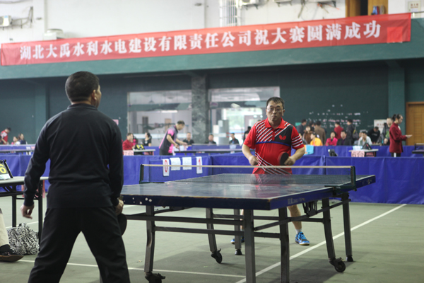 又讯:在2017全省水利系统职工“大禹杯”乒乓球赛上,公司员工胡学愚挥汗如雨,沉着坚定,手法多变,球风犀利,一瞅准机会,便果断出击。现场不时传出热烈的喝彩声。经过几轮紧张激烈的交锋,他在地市州组男子单打比赛中进入八强。(行政部 梅述婷)