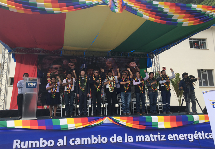 当地时间2018年1月17日上午,圣何塞一级站发电启动仪式举行,标志着圣何塞一级站全面竣工并正式投产发电。玻利维亚总统莫拉莱斯第四次亲临现场,出席投产发电仪式,点赞圣何塞一级站。中国驻玻利维亚大使梁宇、商务参赞王瑞钢随同视察。