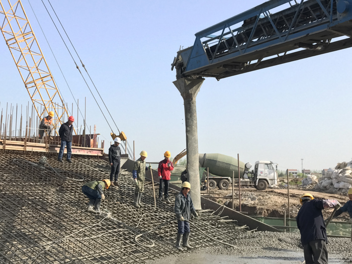 公司承建的腰口泵站到了泵站建设最关键时期 —— 出水流道浇筑,亦是项目部整体实力的体现。当晚,在项目部经理班子带领下,包括内业人员、实习员工在内的全体员工在早已分配好的岗位上就位,有的在流道模板内监测模板情况,有的在仓面指挥调度,有的在实验室做试块,有的则24小时监测模板位移情况,还有的负责后勤保障等。项目部全体员工保持大禹铁军善于克难的优良作风,实行两班倒策略,整整80个小时人停机不停奋战在工作岗位上。