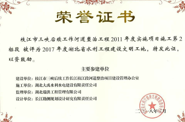 该工程是枝江滨江公园生态环境基础设施建设的一个重要组成部分,同时也是长江护岸首个采用的土工格栅石垫与植草护坡相结合的新型河道治理技术。项目部在无任何经验可以借鉴的情况下,提前谋划、反复试验、不断探索,完善了工艺标准,解决了在长江生态治理土工格栅石垫绿化植草护坡施工作业质量控制的难题。