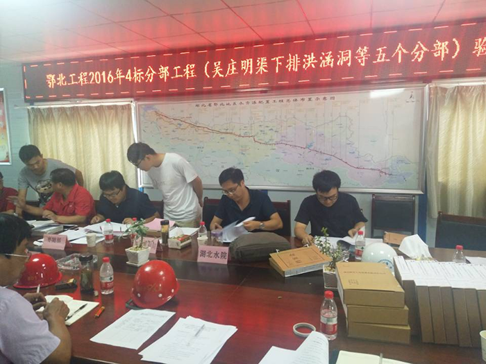 6月15日,由鄂北局、监理联合组成验收工作组对鄂北地区水资源配置工程2016年第4标八里坡隧洞洞身开挖、八里坡隧洞进出口段、吴庄明渠下排洪涵洞、吴庄明渠下排洪倒虹吸、水系恢复工程等五个分部工程进行了验收。