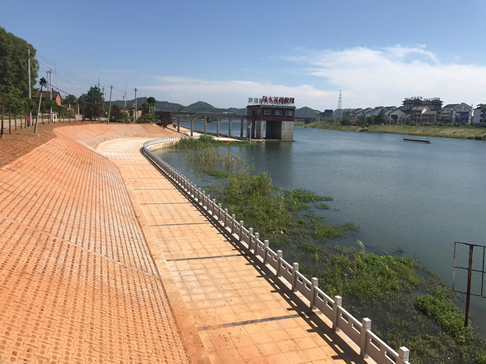 工程链接:咸宁市陆水干流重点河段防洪治理近期工程(赤壁段)第4标段中标合同金额2682.2193万元,工程于2017年7月16日开工,2018年7月10日完工。其主要建设内容为望山垸堤4.8公里堤防除险加固;新建沿河亲水平台810米;望山闸拆除重建;新建堤顶及上堤砼公路3.45公里;新建望山泵站出水工程;闸门、启闭设备及安装和临时工程等。 主要工程量:土方开挖回填218706方,石方5830方,砼6543方,大理石栏杆738米,大理石面砖5285平方米,连锁块护坡29561平方米,草皮护坡75000平方米,路沿石7215米,沥青路面4500平方米等。