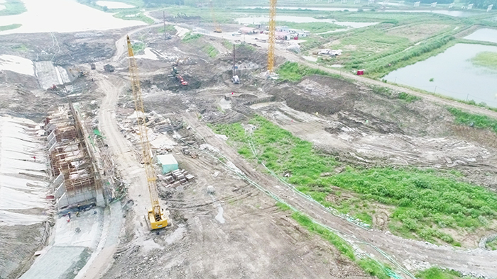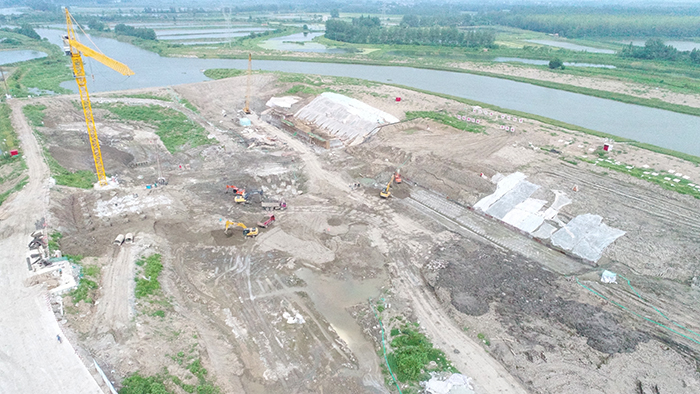 自内荆河节制闸工程施工以来,施工强度大,建设任务重。公司董事、副总经理袁水斌多次亲临施工现场,指导工作,经过项目部科学的部署,全体员工不懈的努力,于2018年7月14日完成了内荆河节制闸全部的地基处理工程,阶段性目标圆满完成。