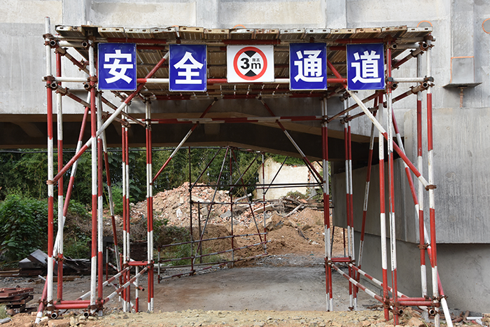 班前教育过后,现场安全员对沿线作业人员安全防护用品佩戴情况、现场安全防护情况、特种作业情况以及危化品使用等情况进行了检查。检查过程中,安全员发现有当地村民从渡槽下方穿过。为保障当地村民的安全,项目部立即组织修建了安全通道,为当地村民的人身安全保驾护航。