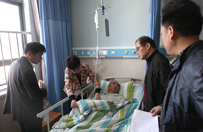 10月26日上午,公司总经理助理、工会主席闵国武,总经理助理兼第二工程公司经理陈汉法及党群工作部负责人一同赴医院住院部看望第二工程公司员工程华春,并送出困难帮扶金20000元整。