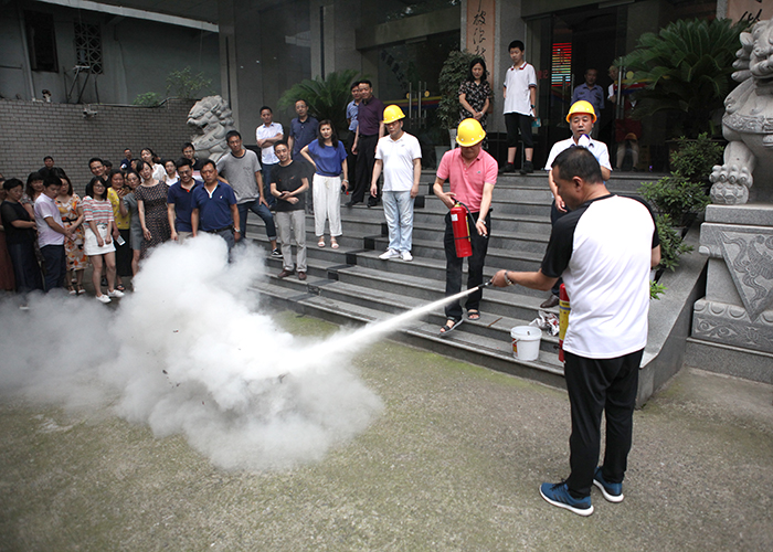 随后领导小组对员工进行了灭火器使用步骤及方法实操培训,重点讲解了干粉灭火器的构造、使用技巧等内容,灭火行动组进行了现场灭火示范。
