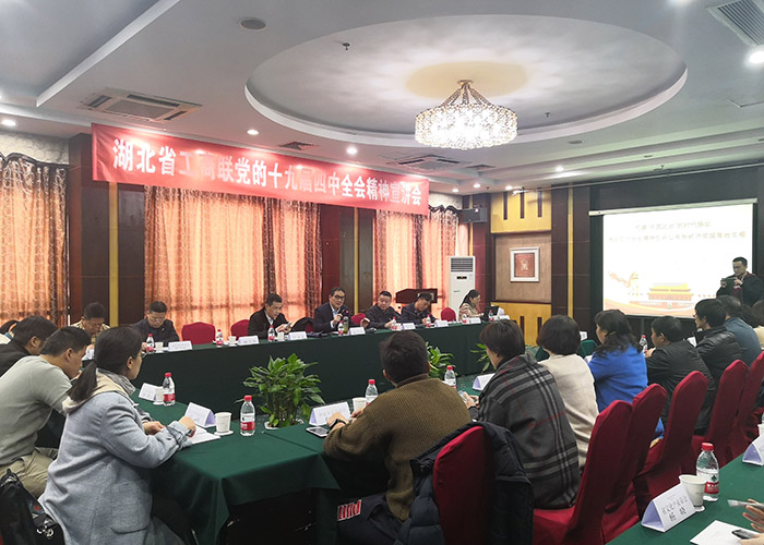 11月4日下午,湖北省工商联在武汉中原实业集团举办党的十九届四中全会精神宣讲报告会。湖北省工商联党组成员、副主席赵序沨作宣讲报告,武汉中原实业集团党委书记、董事长甘旻主持会议,非公企业代表和部分商协会参加宣讲会,公司党群工作部负责人参加会议。