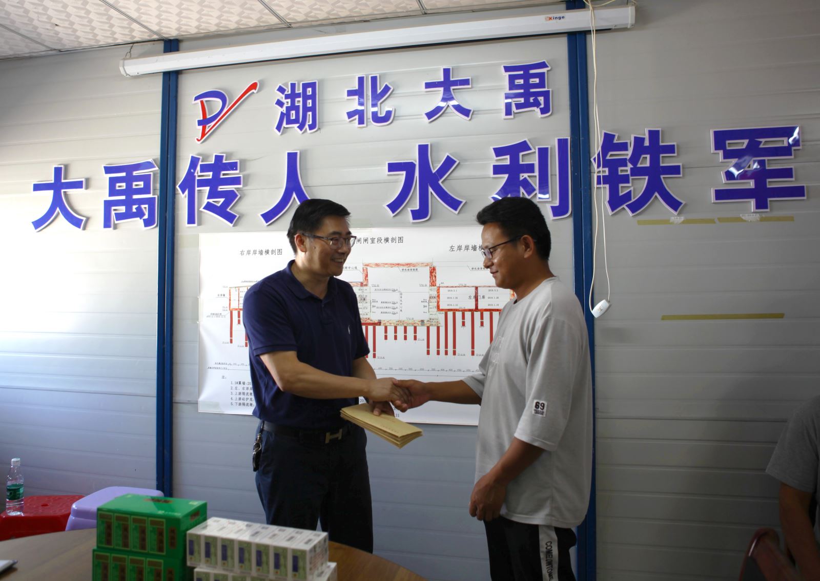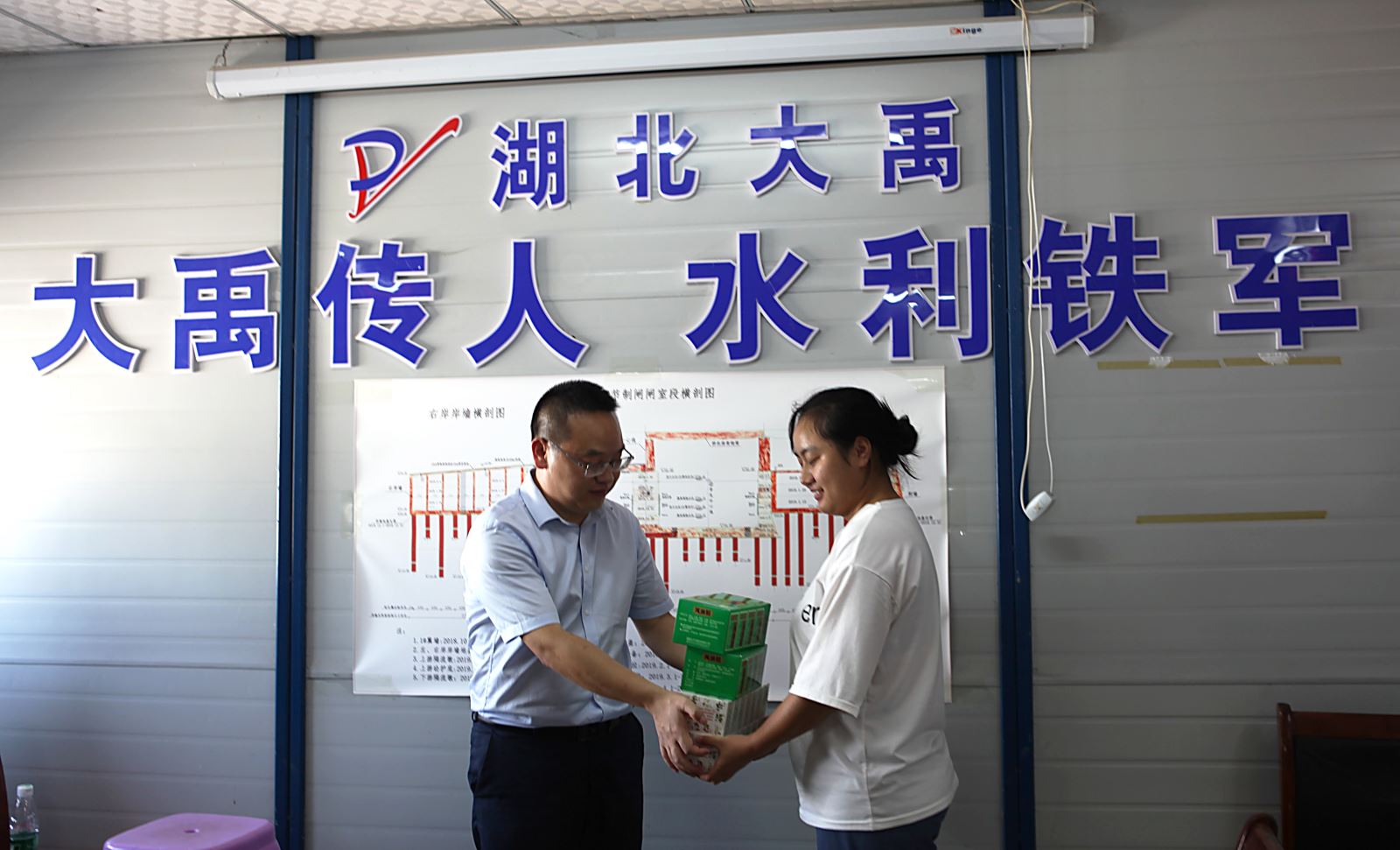 随后,胡刚来到洪湖内荆河项目部,他表示,入夏以来,公司员工抗疫情、防大汛、战高温,全力复工复产,全力防汛抢险,为保证公司生产经营平稳做出了重大贡献。八月以来,随着疫情、雨情、汛情的缓解,气温也在逐渐攀升,我们项目部员工不顾酷暑,仍然奋战在生产一线,为我省的水利建设事业持续奉献。特开展“送清凉,建新功”主题党日活动,为现场员工送上清凉,激励大家为公司发展再建新功。并向大家介绍了公司近期的三年发展战略和生产经营情况,希望项目部各位员工认真学习,严格执行。