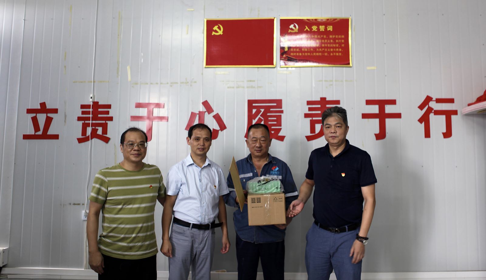 当前,炎炎夏日,酷暑难挡。为确保项目部一线员工的身心健康,合理组织施工建设,加快施工进度,保证施工安全,公司党委结合工作实际,开展“送清凉 建新功”主题党日活动,传递公司对员工的关爱。公司党委购置了绿豆、藿香正气水、清凉油等慰问防暑物资,发放到公司一线项目部每一位员工手中。