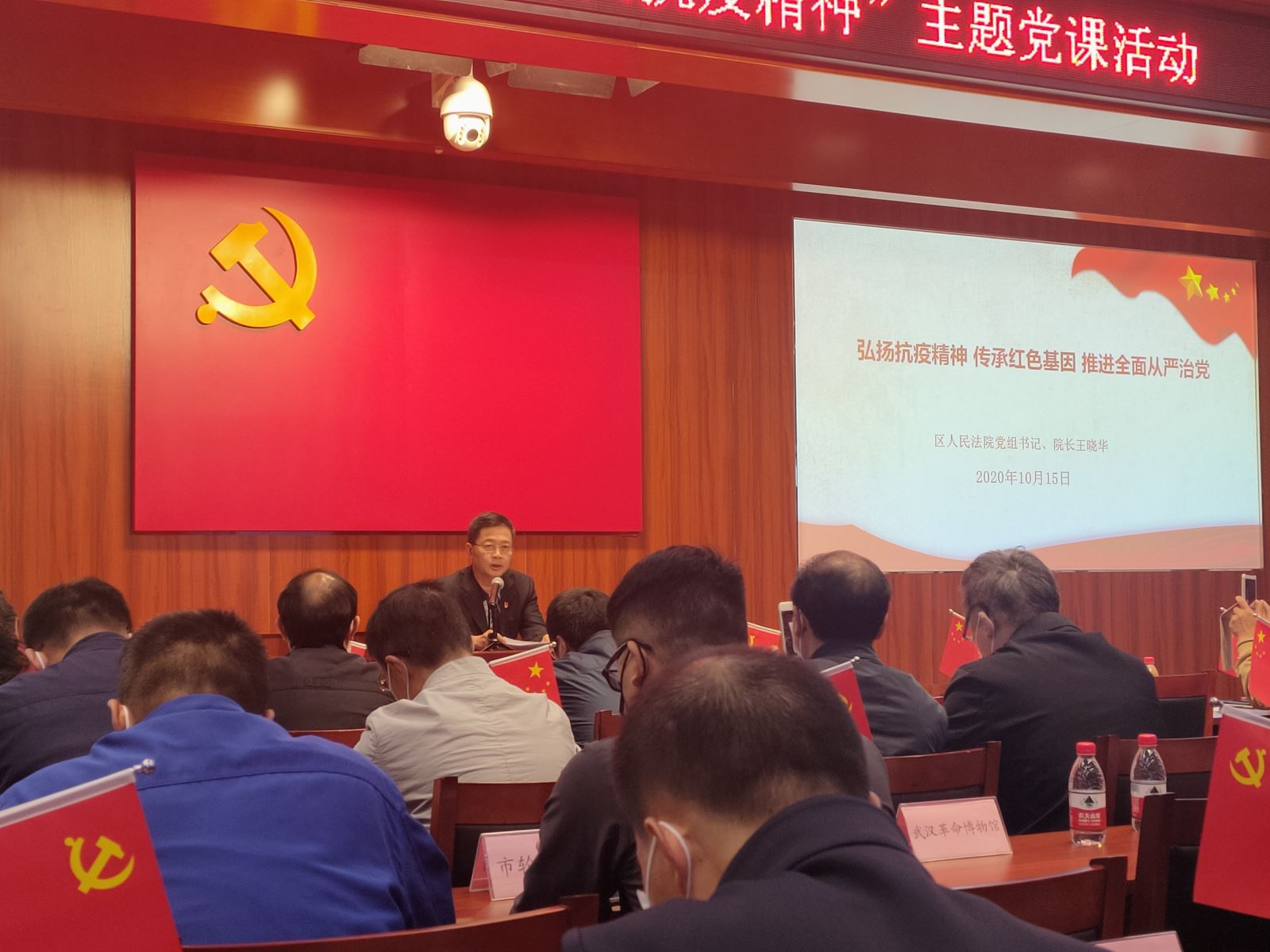 “坚定拥护党的领导,牢固树立以人民为中心的价值理念...”2020年10月15日下午,位于武汉市武昌区都府堤的中国共产党纪律建设历史陈列馆里响起了《我和我的的祖国》的动人歌声,名为“习近平新时代中国特色社会主义思想”武昌周周讲主题学习活动暨中华路街抗疫先进表彰活动正在进行。