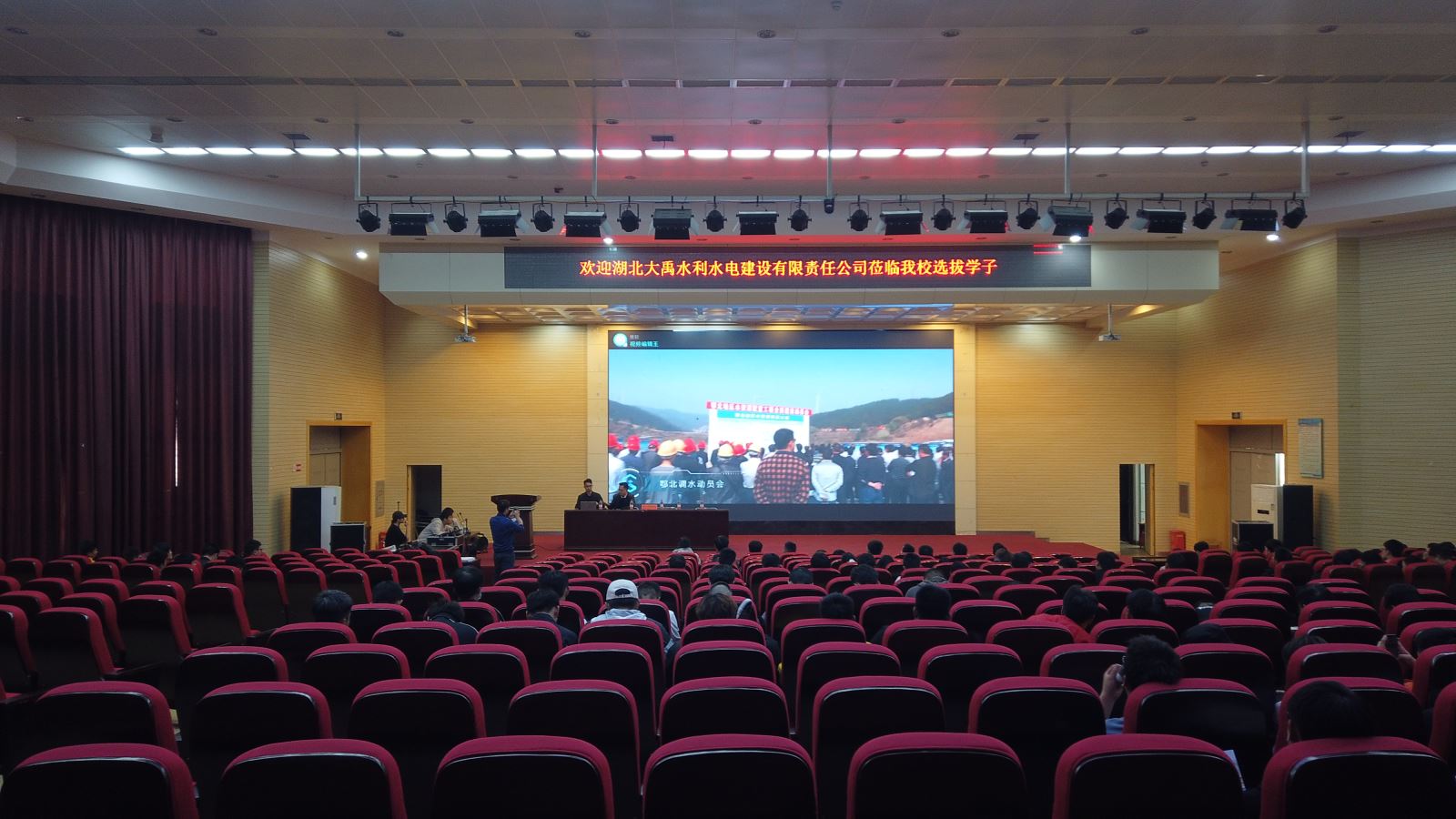 继毕业订单班之行取得圆满成功,公司周密部署,加紧校园招生进程。10月29日下午,公司人资行政部赴湖北水利水电职业技术学院汤逊湖校区学术报告厅进行新生订单班专场校园招聘宣讲会。