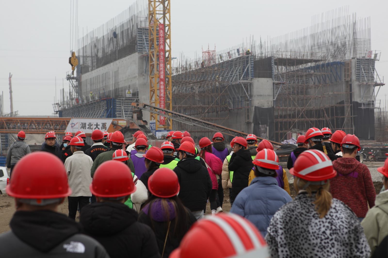 一夜休顿,11日早晨,大家精神饱满整装待发,驱车前往碾盘山水利枢纽项目部进行参观学习。项目部为大家准备了安全帽、笔记本和笔等物品帮助大家更好的在项目上学习。项目负责人以及碾盘山技术骨干们带领着大家参观并讲解了碾盘山水利枢纽各个节点的功能、用途以及工程进度等情况。