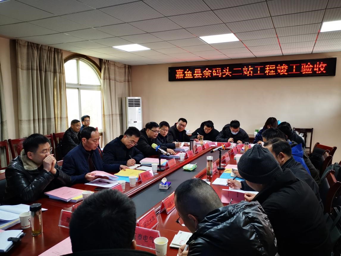 12月22日,由咸宁市水利和湖泊局主持,在嘉鱼县余码头二站现场组织召开了余码头二站工程竣工验收会议。湖北省水利厅马国荣,咸宁市水利和湖泊局刘四清、嘉鱼县水利和湖泊局胡立坤,代建、设计、监理、施工等相关单位共30余代表及特邀专家参加会议,并根据会议议程成立了竣工验收委员会。