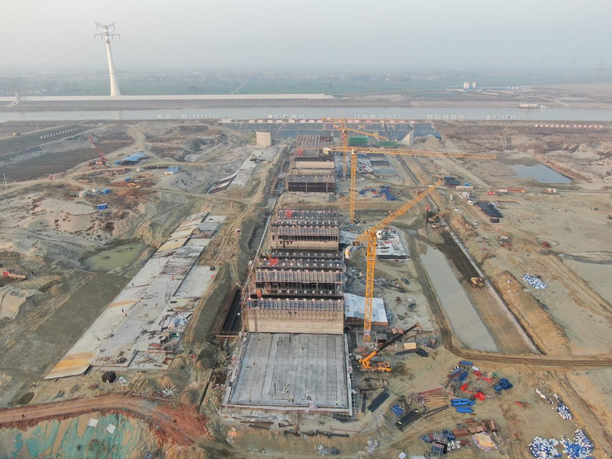 2020年初受疫情影响,主体工程工期一度滞后,复工后又迎来了汛期。在这样紧张的局势下,项目部科学调整施工计划,为保证本年度总工期目标的顺利实现,项目部加强组织保障体系,明确各部门及相关人员任务分工,强化进度责任,设置专人对施工进度进行动态控制,对各部门、班组施工进行动态考核,并定期召开会议协调施工进度。通过“以周保月,以月保季,以季保年”的动态管理,在保证质量安全的情况下,工程有条不紊地推进着。