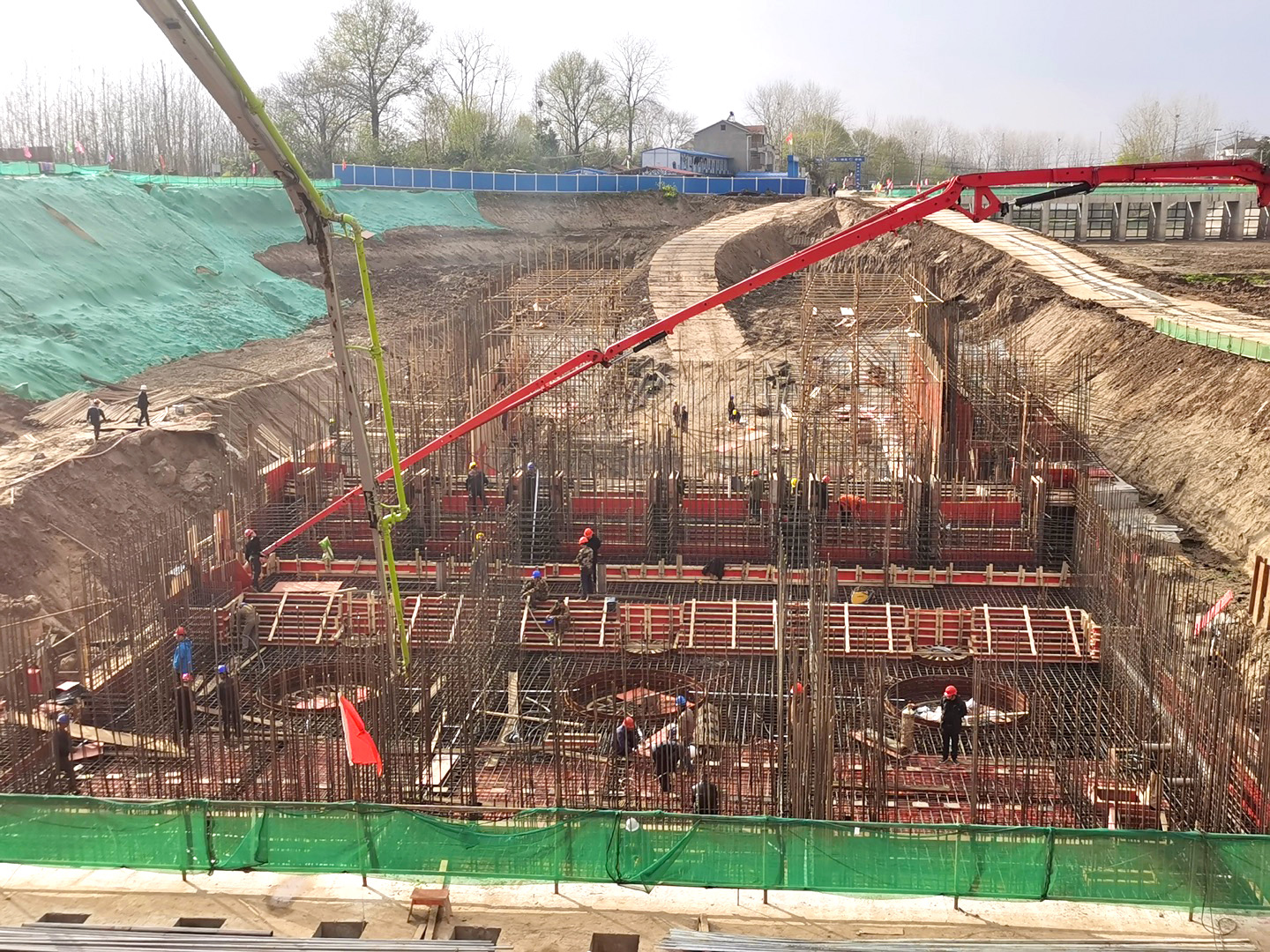 武汉市新洲区挖沟泵房新建工程-EPC项目进水流道层混凝土浇筑顺利完成