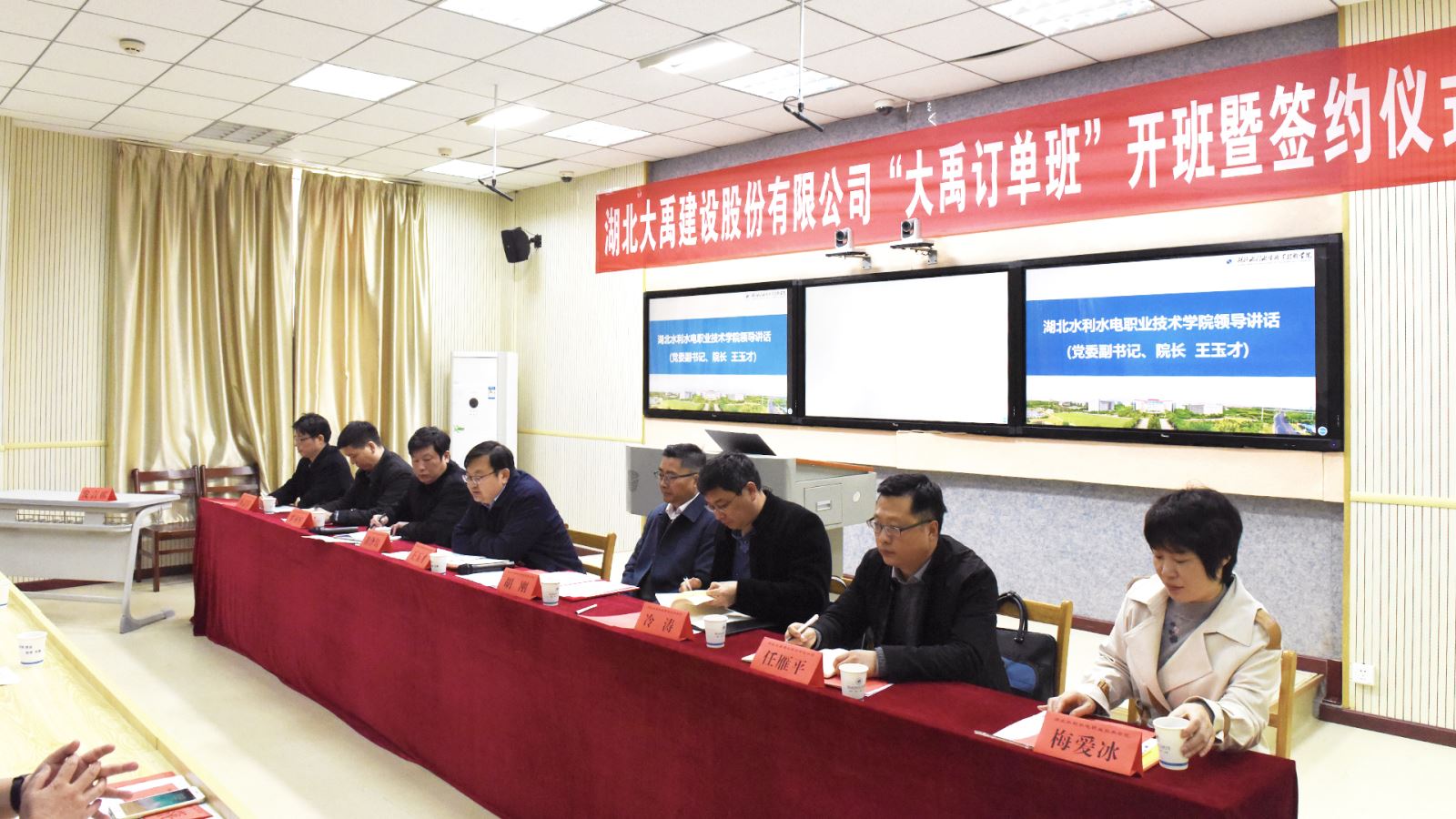 3月10日上午10时,湖北水利水电职业技术学院与湖北大禹建设股份有限公司联合创办的“大禹订单班”开班暨签约仪式在汤逊湖校区隆重举行。
