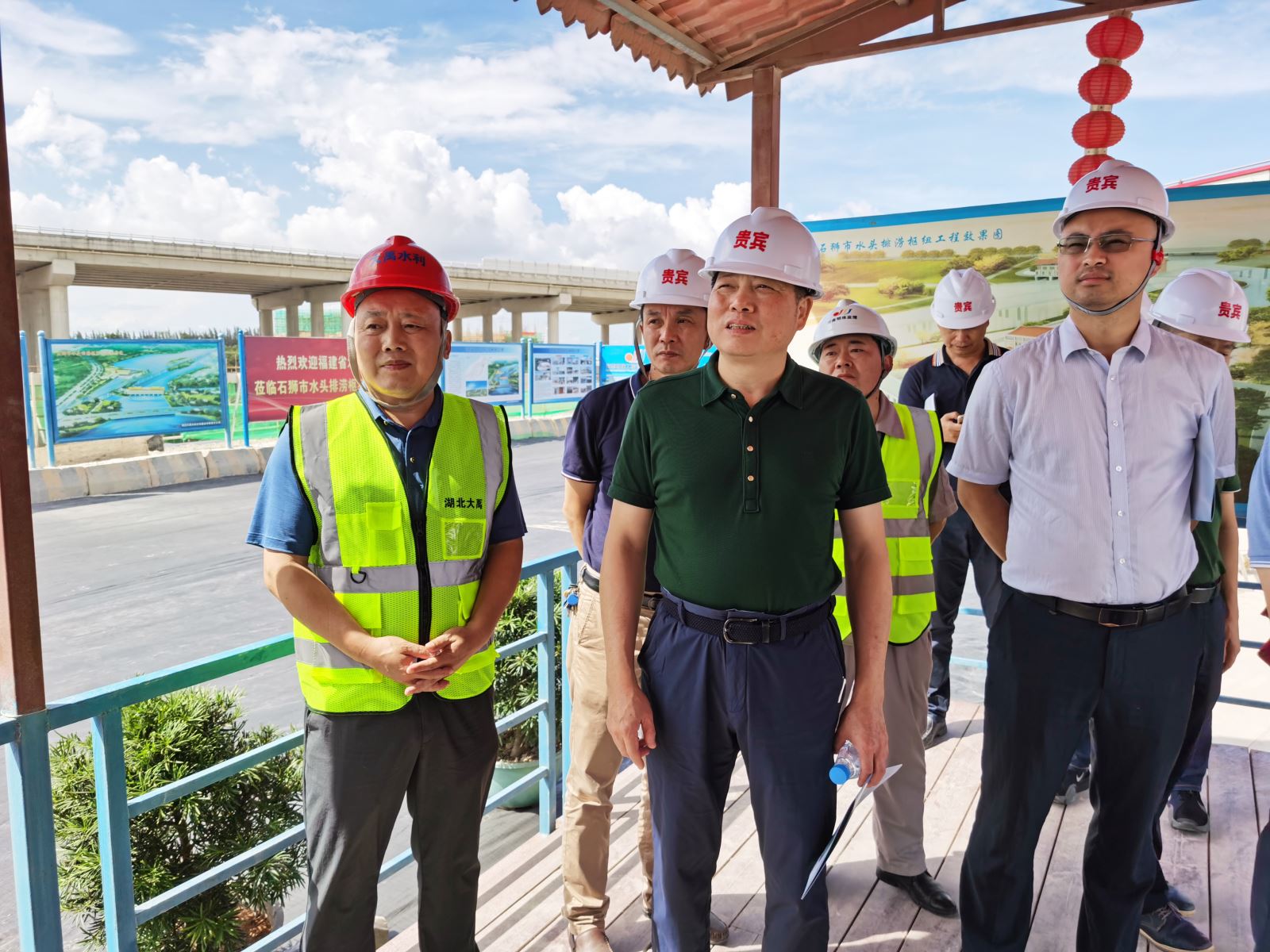 2021年7月20日,福建省水利厅领导、省质检总站、省水科院及各地市水利局局长莅临石狮市水头排涝枢纽工程参观学习,公司董事长汪炳生陪同学习。