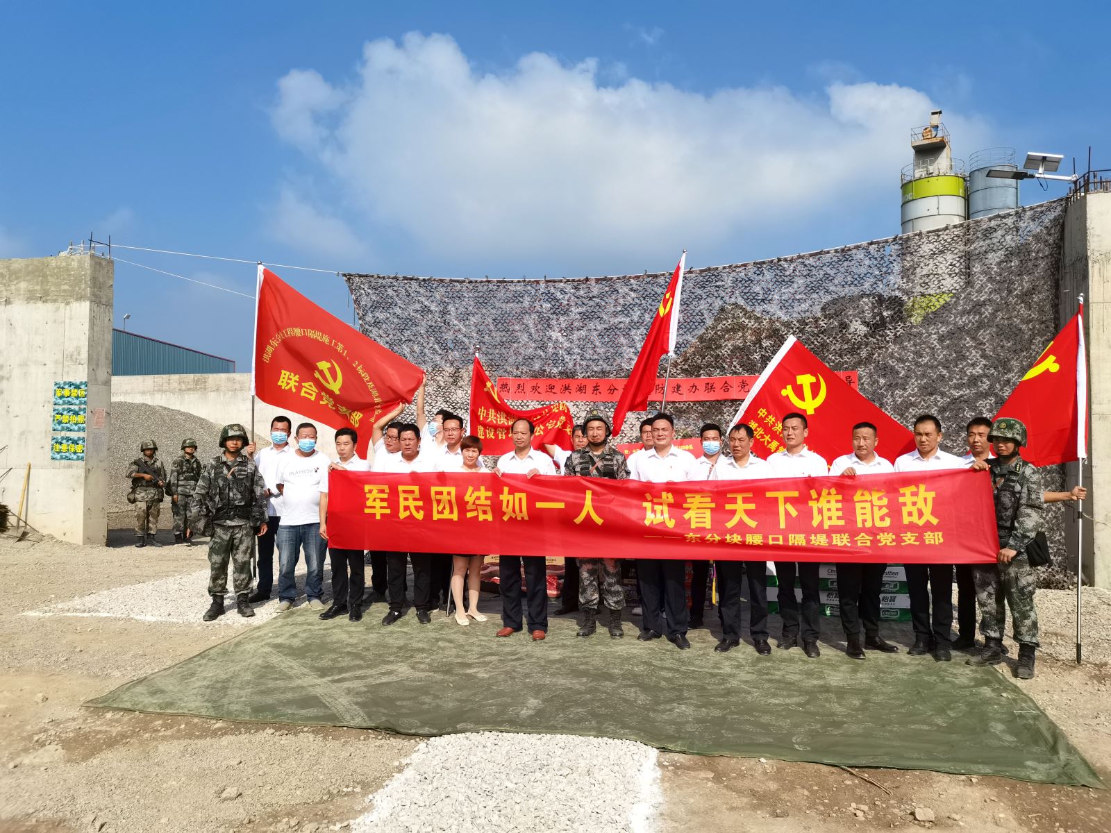 湖北大禹洪湖隔堤3标支部联合东分块党总支与堤防建办支部慰问舟桥旅部队驻训官兵