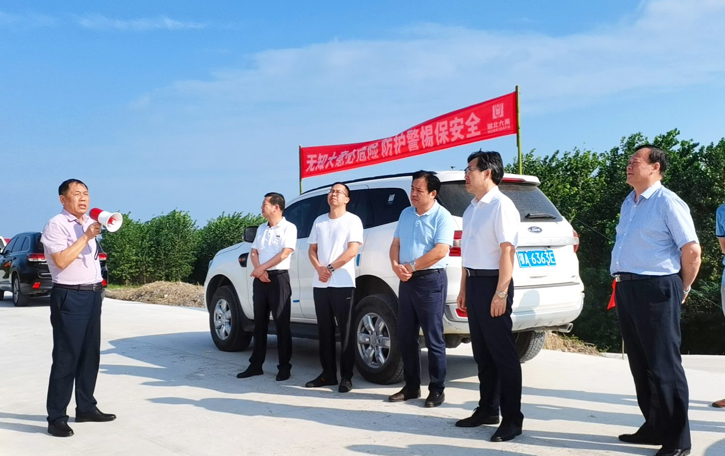 9月6日,洪湖市委书记伍昌军、省洪工局局长毛向云一行莅临公司承建的洪湖东分块蓄滞洪区蓄洪工程洪湖主隔堤和东荆河堤防汛道路施工第2标段项目部,公司常务副总经理周运奎陪同检查。