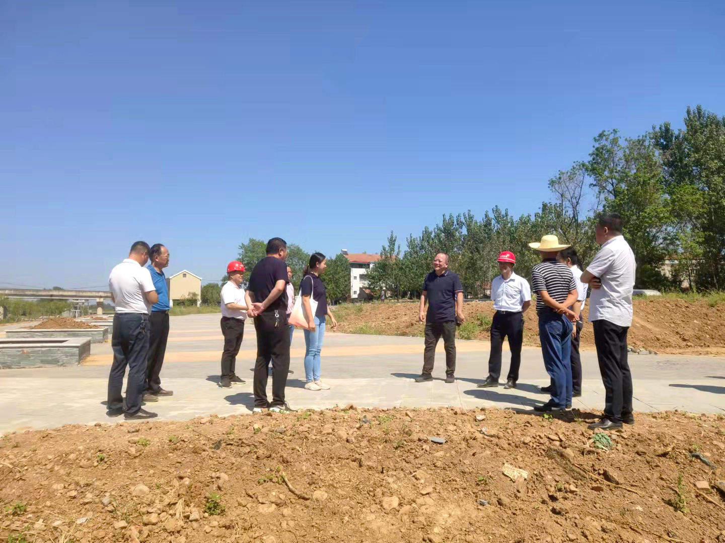 陈曙东一行前往应城市水系连通项目蒲源龙滩广场实地勘察,详细询问广场工程建设情况、施工进度、资源投入情况后对工程质量、安全、环保表示赞许。陈曙东针对工程情况提出了两点建议,一是要注重整合,利用现有资源,发挥政策优势,合力推进,让文化广场具备多功能性,及休闲、健身、娱乐、运动为一体,体现多功能整合化设计。同时要突出表现乡村文化风貌,展现乡村文化特征;二是统筹规划,分步实施。蒲源龙滩广场要纳入美丽乡村文化建设整体规划中,从整体出发,从设计风格中表现出乡村文化定位,做到绿化、亮化、美化同步。