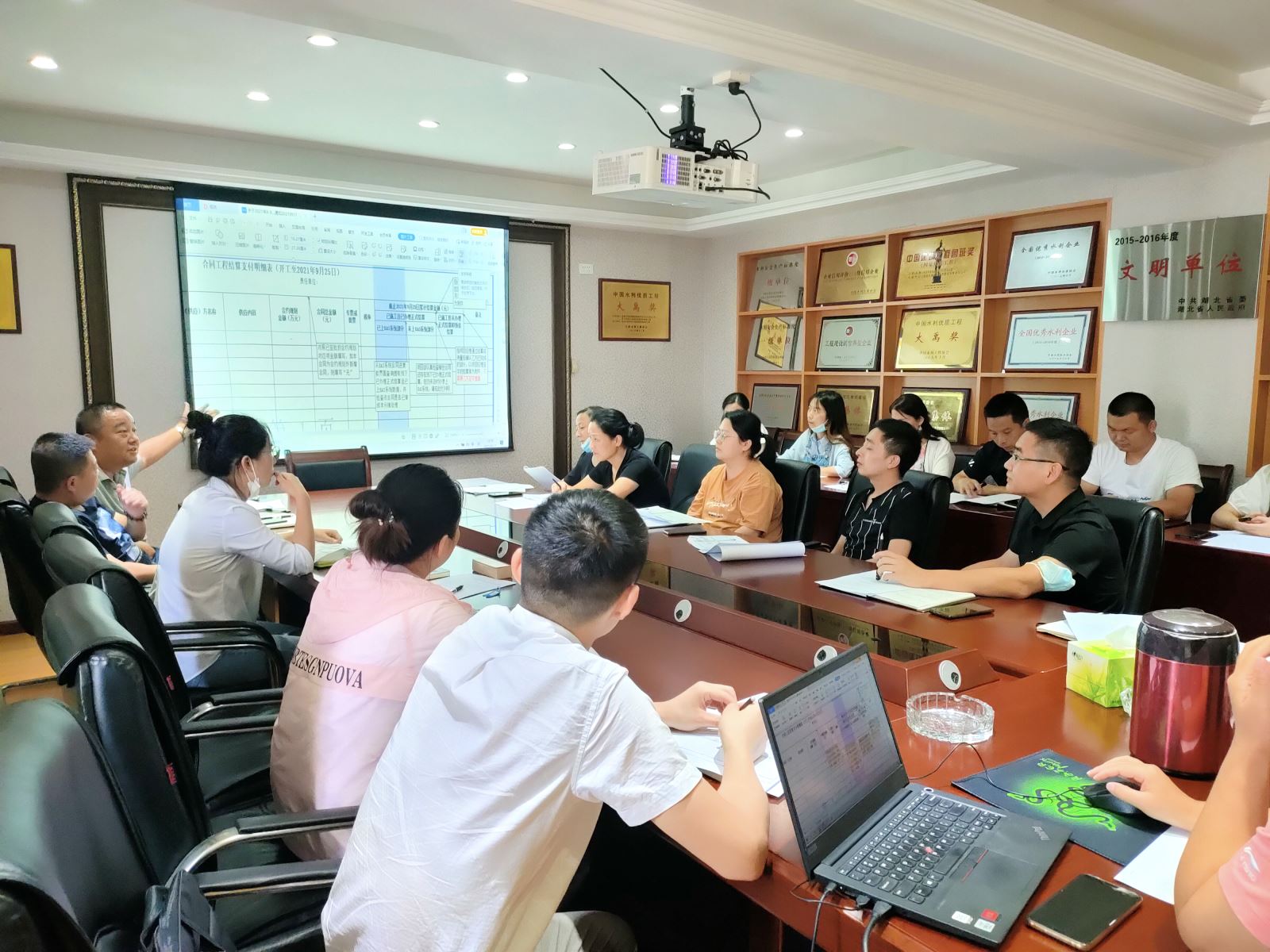 2021年9月17日下午,成本管理部组织召开关于8-9月份双月生产经营报表填报部署工作会议。本次会议是为了能确保各分子公司2021年8-9月份双月生产调度会反映的产值、成本数据真实有效。各分子公司相关人员及成本管理部全体员工参加会议。