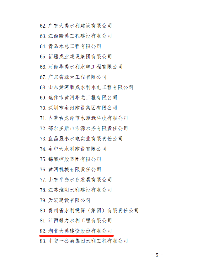 湖北大禹建设股份公司荣获2019-2020年度“优秀水利企业称号”。