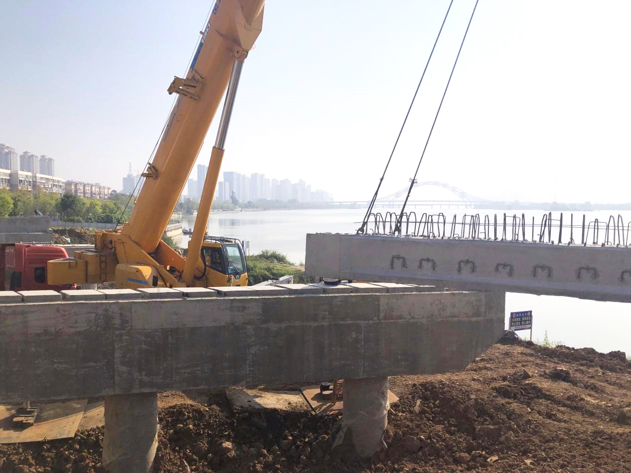由公司联合体中标承建的襄州区城区河流岸线保护利用及水生态保护(“一江两河”治理)工程EPC项目新建连山沟中桥工程正按“大干30天确保9.30五洲沟桥、小张湾桥和连山沟桥完工”计划有序推进。9月12日,随着第一片13m混凝土空心板梁板缓缓吊起,稳稳安放在桥梁支座上,标志着连山沟桥主体工程基本结束,正式进入桥面施工阶段。在项目部精细的管理下,保质保量完成节点预制空心板吊装任务。