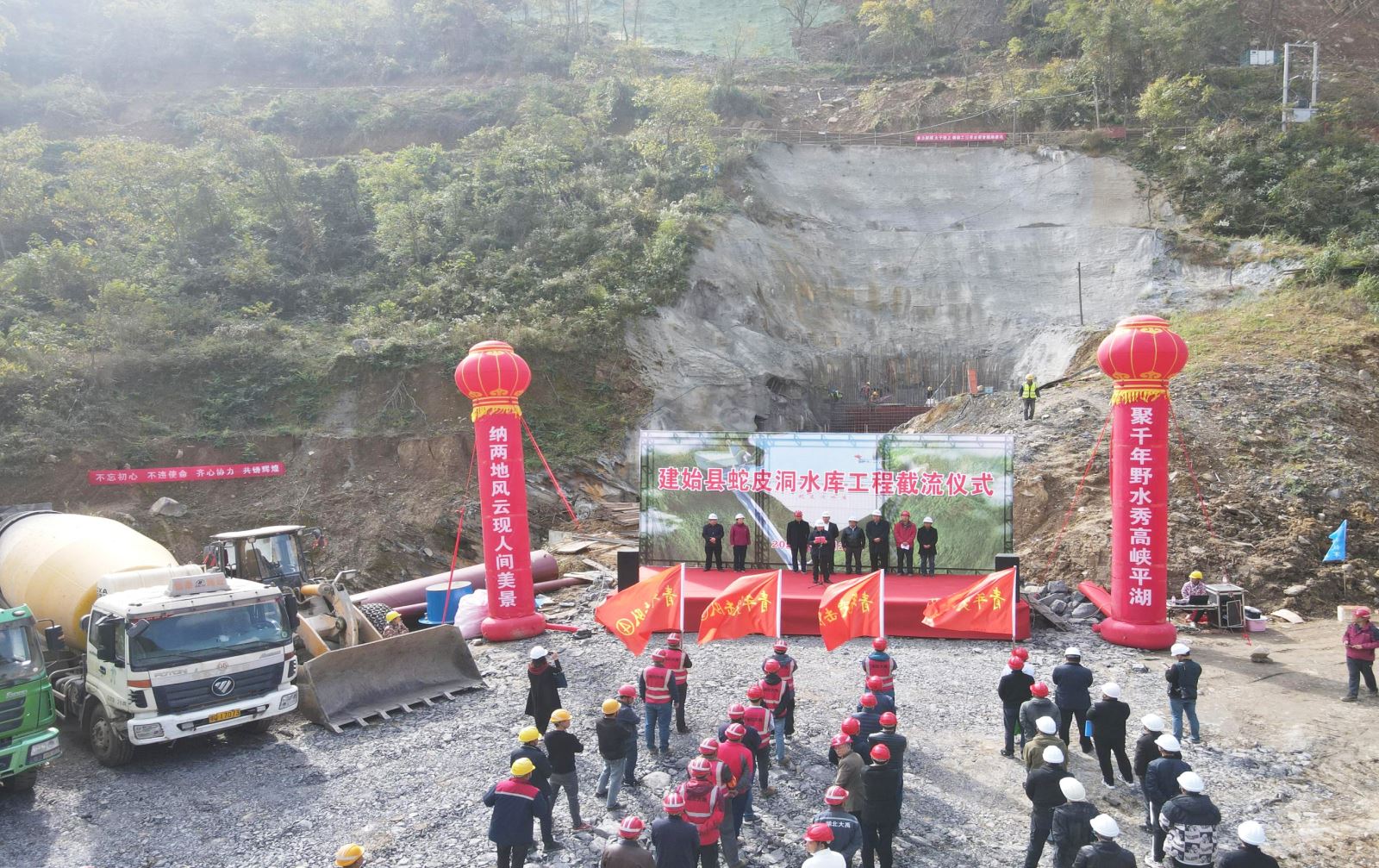 2021年10月22日,建始县蛇皮洞水库工程截流仪式在水库大坝现场举行,建始县水利局局长魏宗华及各参建单位代表在仪式会上发言,副县长姚永红宣布蛇皮洞水库正式截流。公司总经理胡刚、副总经理傅高林、运营管理部及第二工程公司负责人参加了截流仪式。