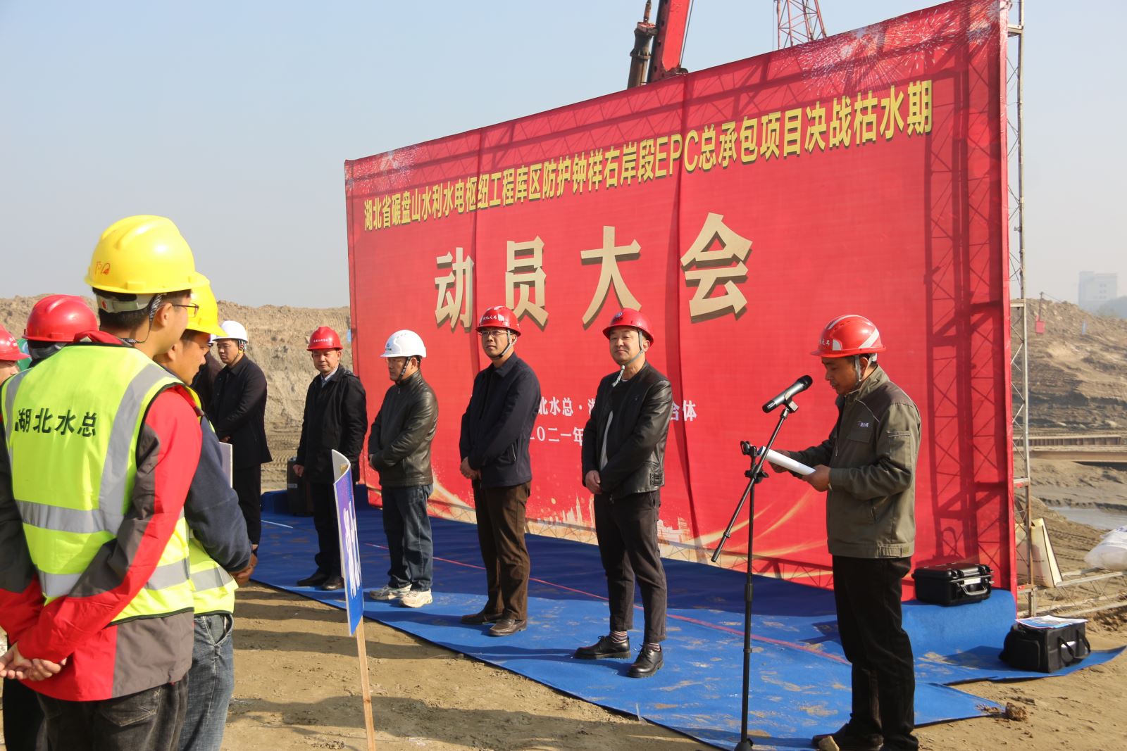 11日18日上午10时,为加快推进碾盘山库区工程建设工作,在联合泵站施工现场举行了碾盘山库区防护工程钟祥右岸段枯水期动员大会。碾盘山建设管理局、建办、监理、EPC总承包、施工等单位负责人参加了本次动员大会。