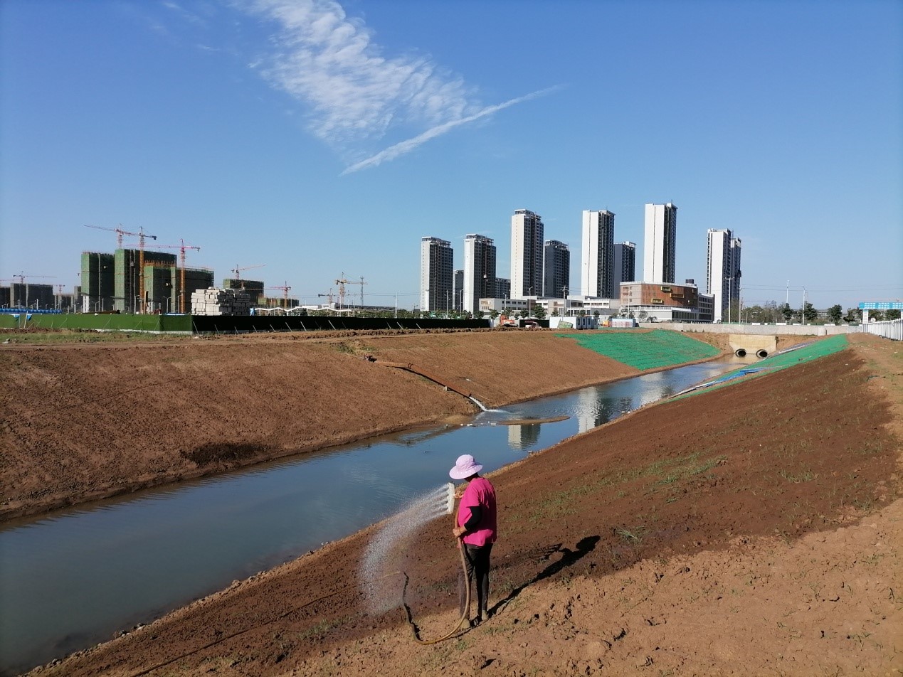 工程链接:主要建设内容,整治南排水渠2.20km;新建下穿南山路及鹿门大道DN2000顶管工程 (82m+84m);整治王家河水渠0.8km;南排水渠及王家河渠道修筑完成后,在渠道两侧边坡播种草籽,形成草皮护坡,后期为华侨城文旅示范区水生态升级改造建设提供基础。
