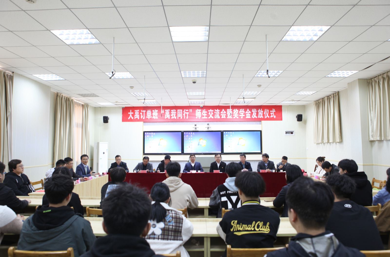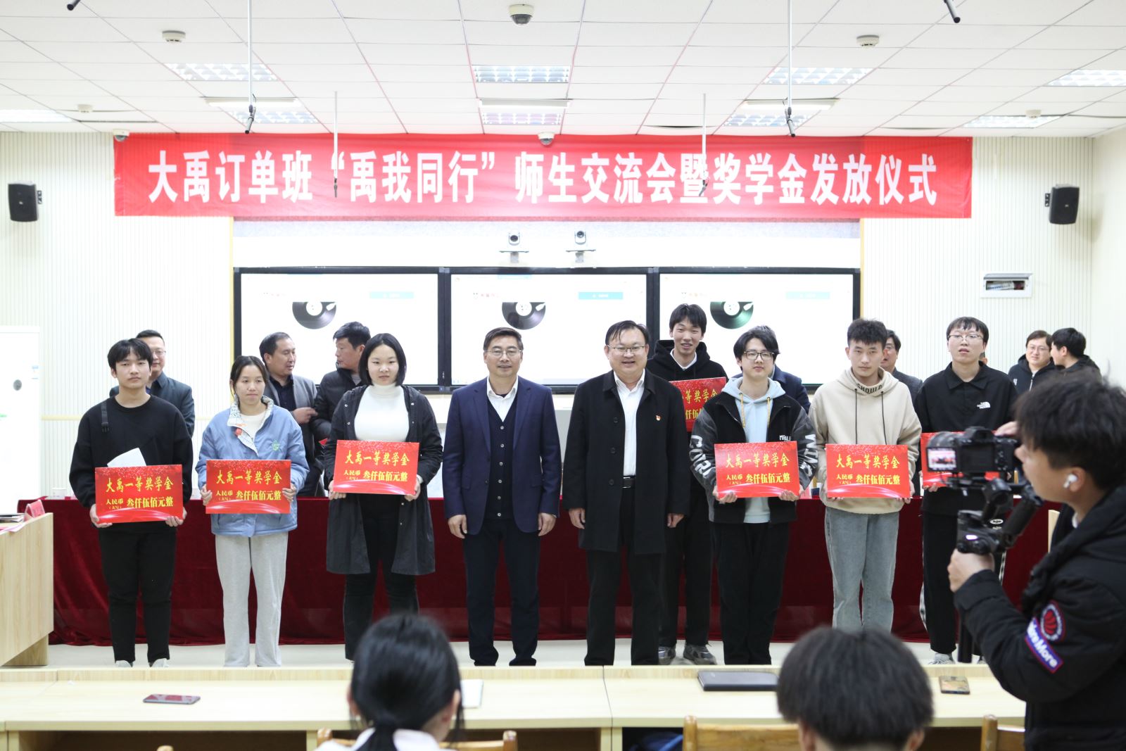 座谈会最后,水职院及公司领导们为大禹订单班同学们发放了奖学金。