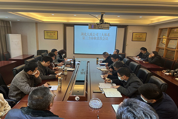 2021年12月,公司组织进行了2022年外审工作。中国质量认证中心审核组长及成员、各单位负责人及成员参加了第三方外审工作。